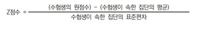 원점수가 평균에서 얼마나 떨어져 있는지 나타낸 점수로, 평균과의 거리로 높을수록 유리함